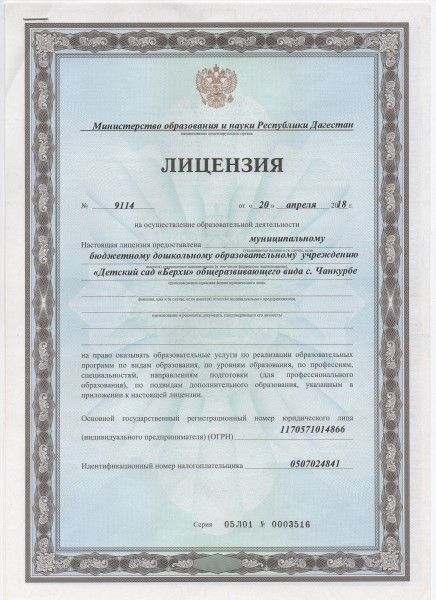 | Полное наименование образовательной организации* | Муниципальное бюджетное дошкольное образовательное учреждение 'Берхи' с. Чанкурбе |